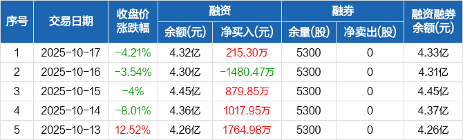 华特气体:融资净买入215.3万元,融资余额4.32亿元(10-17)