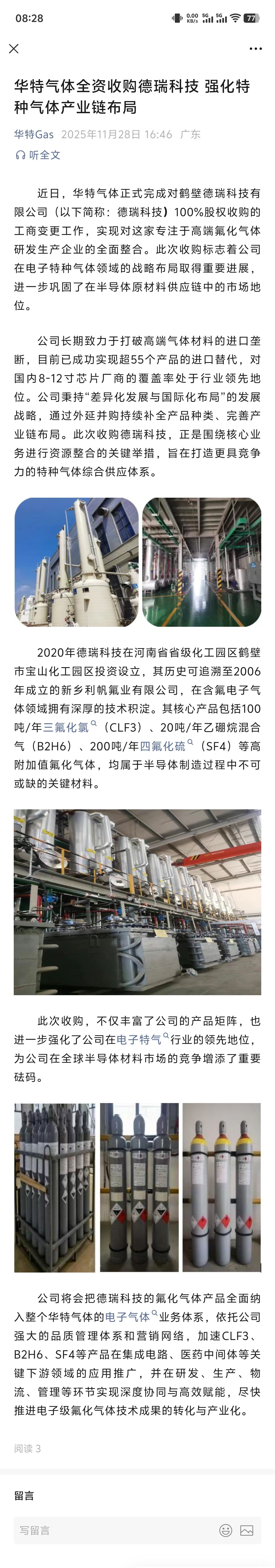 华特气体全资收购德瑞科技强化特种气体产业链布局。这么重大的事情为何不公告?
