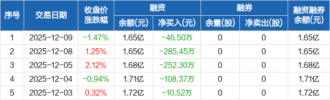 凯立新材:连续6日融资净偿还累计737.89万元(12-09)