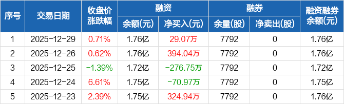 凯立新材:融资余额1.76亿元,创近一年新高(12-29)