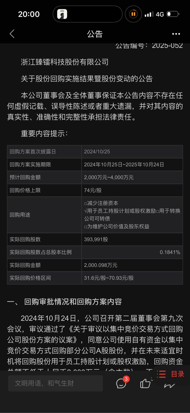 $臻镭科技(SH688270)$ 看这史上最不情愿抠搜的回购,纯粹为了完成任务,多100股都懒得要