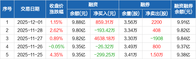 臻镭科技:融资余额9.88亿元,创历史新高(12-01)