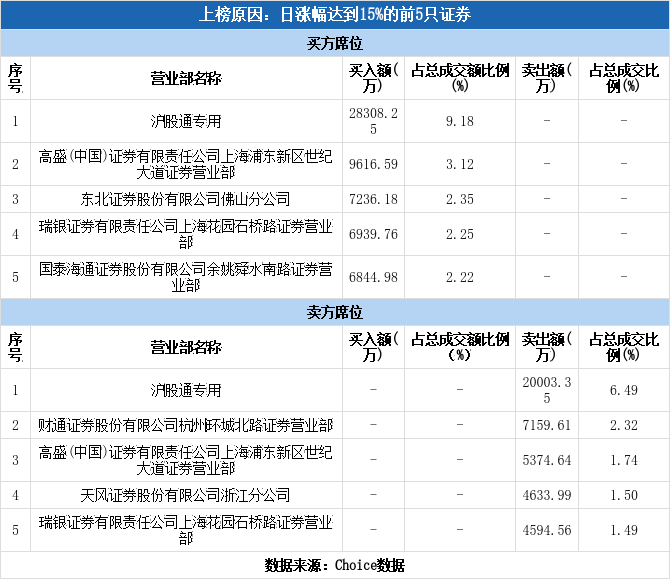 沪股通现身龙虎榜,臻镭科技上涨17.40%(12-11)