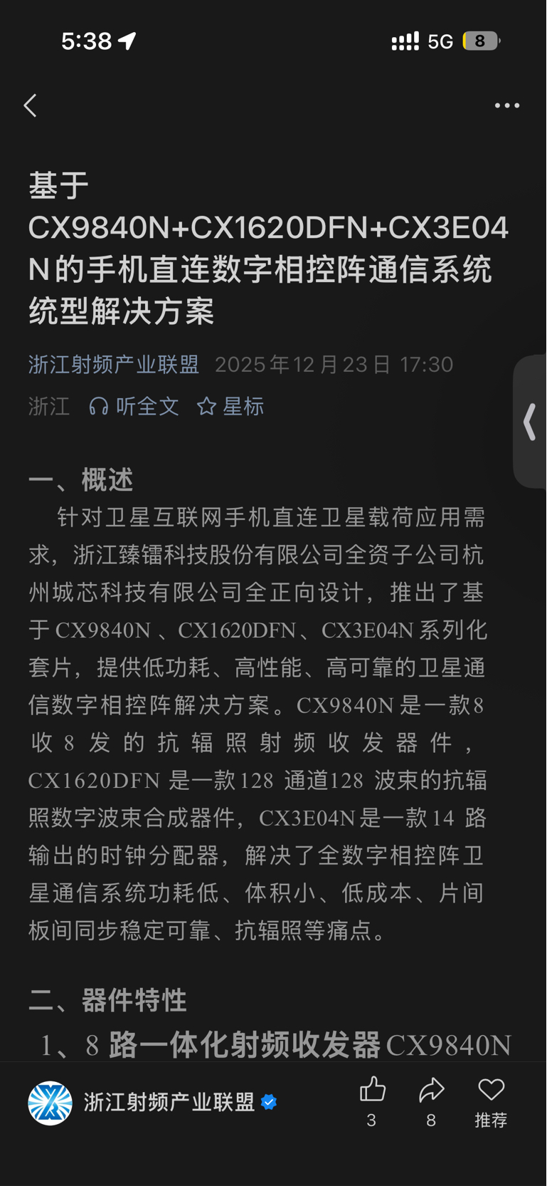 $臻镭科技(SH688270)$ 子公司城芯的手机直连方案