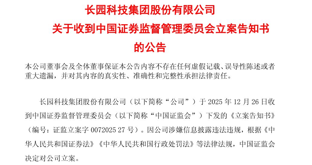 ST长园:涉嫌信息披露违法违规被中国证监会立案