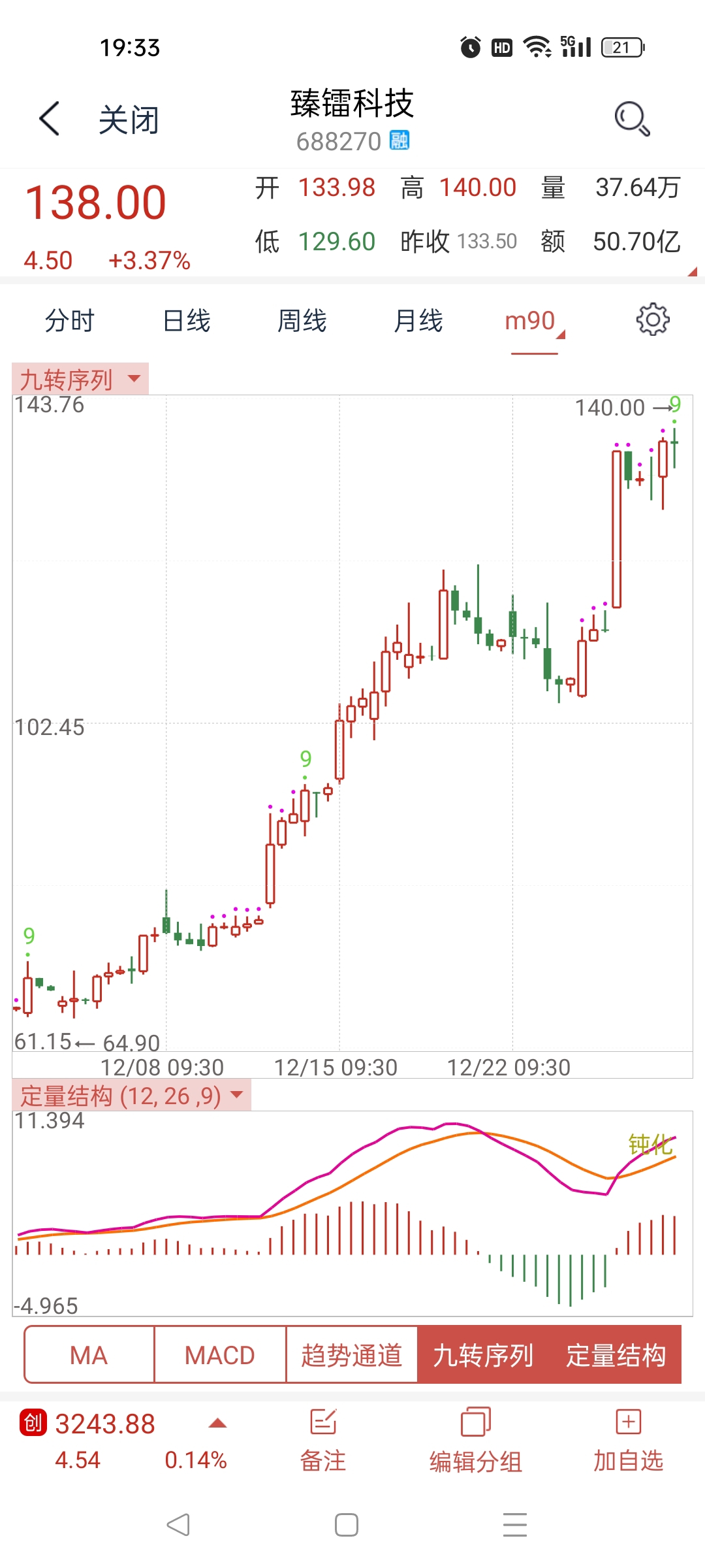 90分钟顶部钝化+9,60分钟和120分钟都有顶部钝化周一跌,就会全部形成顶部结