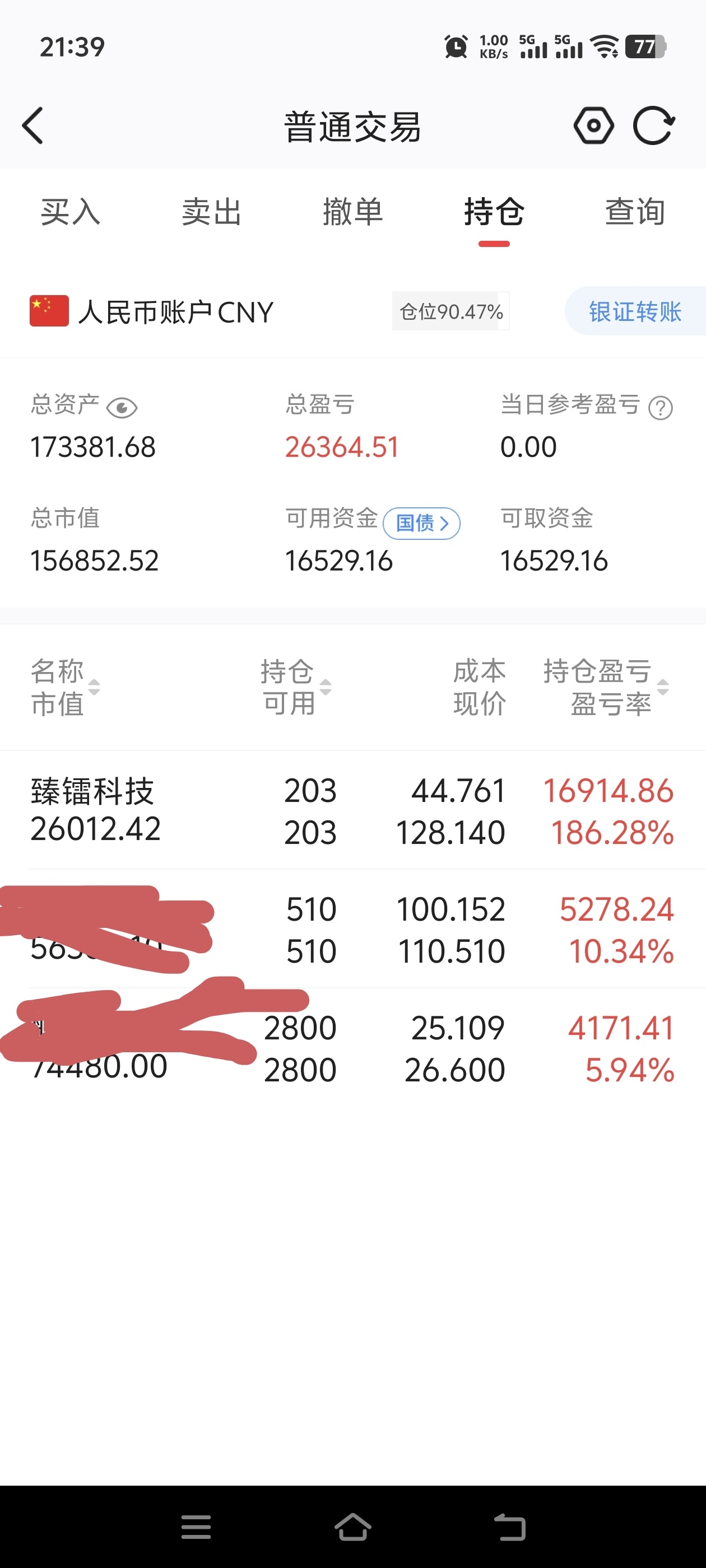 昨天70%臻镭科技,今天开盘125减仓600股,103.5买的伟测科技400股,