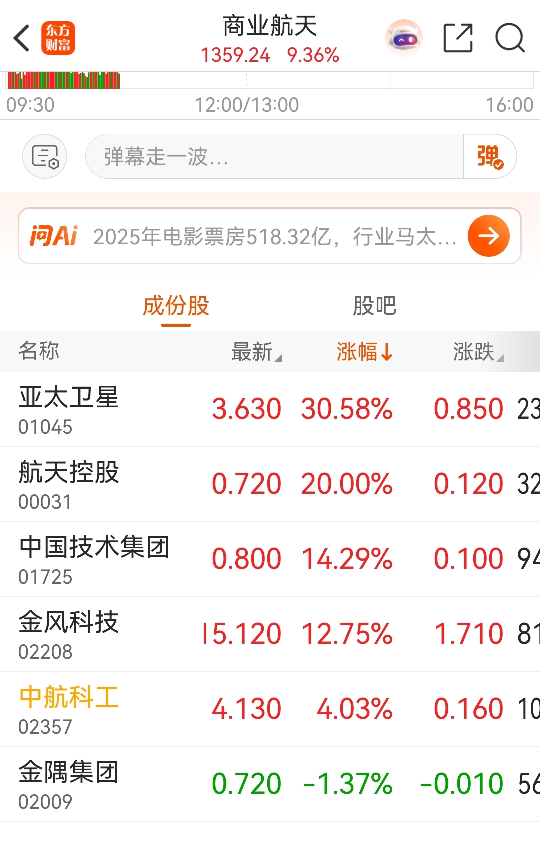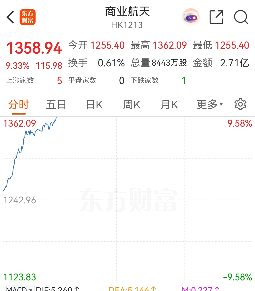 $臻镭科技(SH688270)$ $超捷股份(SZ301005)$ $臻镭科技(SH688270)$ $星辰科技(SZ920885)$ 港股商业航天板块,涨幅巨大,别冲的太猛了,周三逢高我减了半仓,下周一高开太多,可不敢追哦。