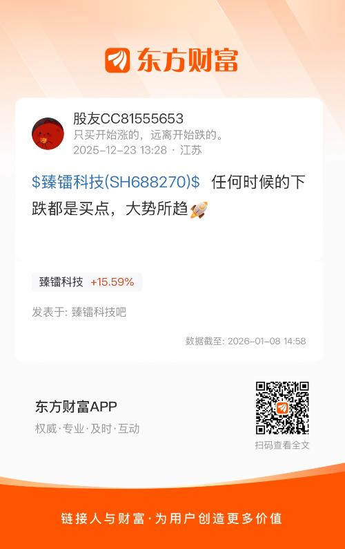 温馨提示: 1.根据《证券法》规定,禁止编造、传播虚假信息或者误导性信息,扰乱证券市场;2.用户在本社区发表的所有资料、言论等仅代表个人观点,与本网站立场无关,不对您构成任何投资建议。用户应基于自己的独立判断,自行决定证券投资并承担相应风险。《东方财富社区管理规定》