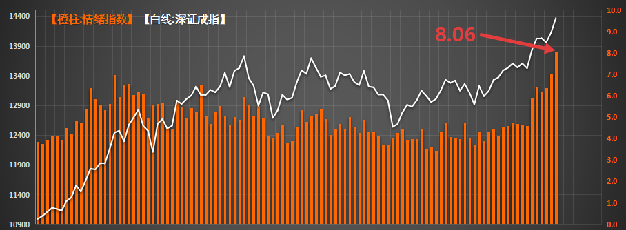 大盘的情绪也稳步上升,今天创造了新的历史记录,超过了2024年10月8日的7.84。