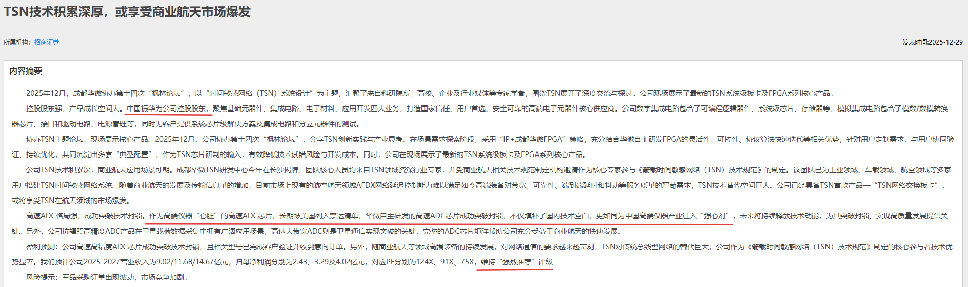 对于成都华微,招商证券在其调研报告中竟然用了“强烈推荐”的词语!