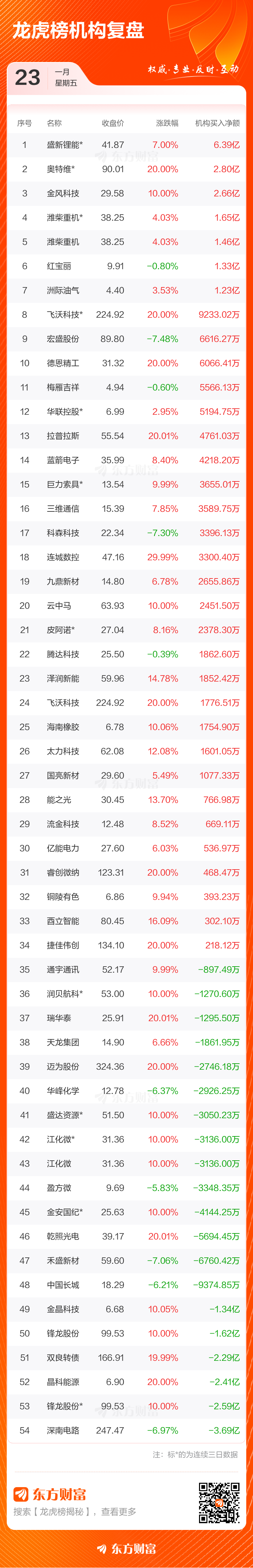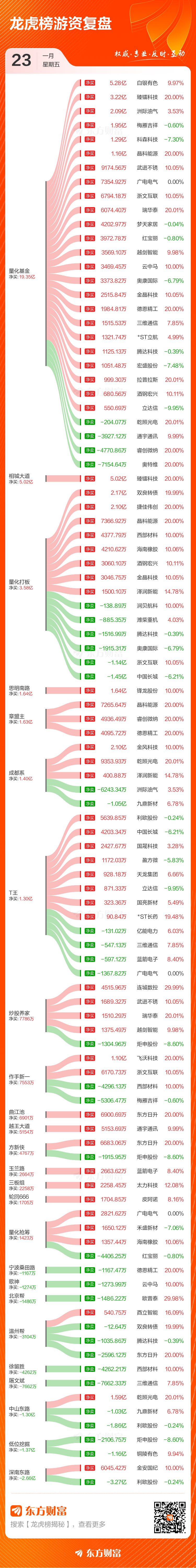 1月23日龙虎榜复盘:“相城大道”5.02亿元净买入臻镭科技