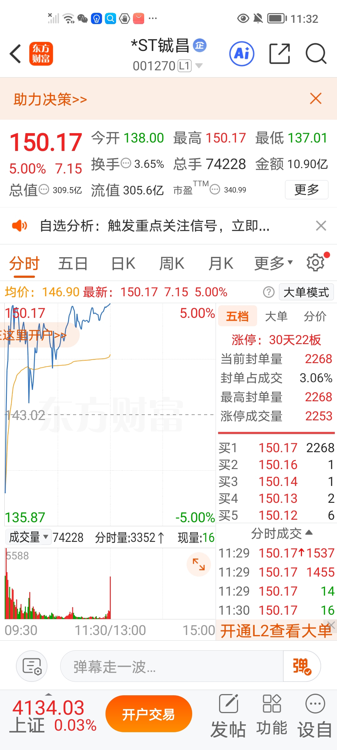 这个戴帽的ST铖昌也太强了,一直在涨停的路上。