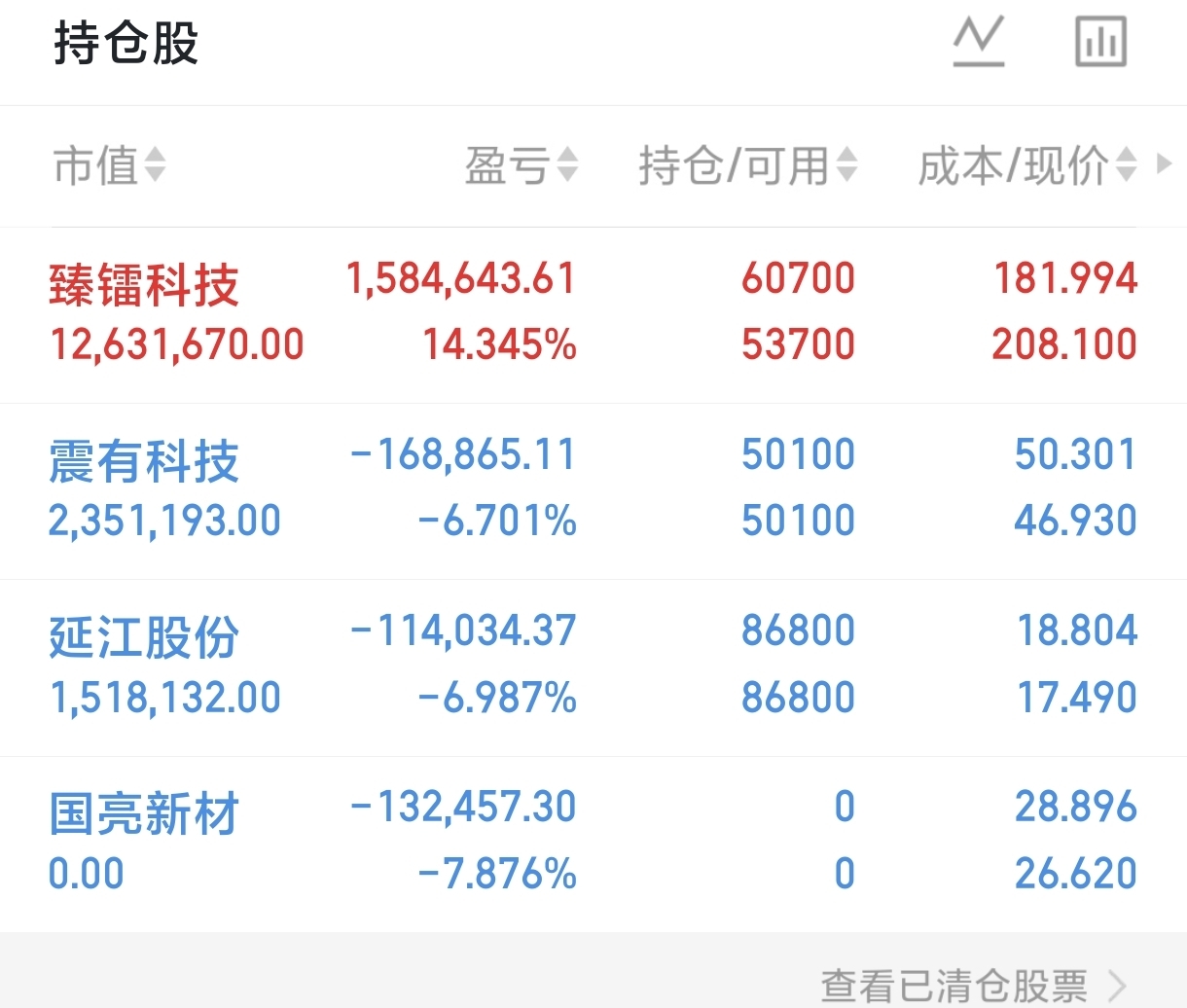 今天实盘记录目前持有臻雷科技早上加了没动震有科技大面一碗延江股份大面一碗