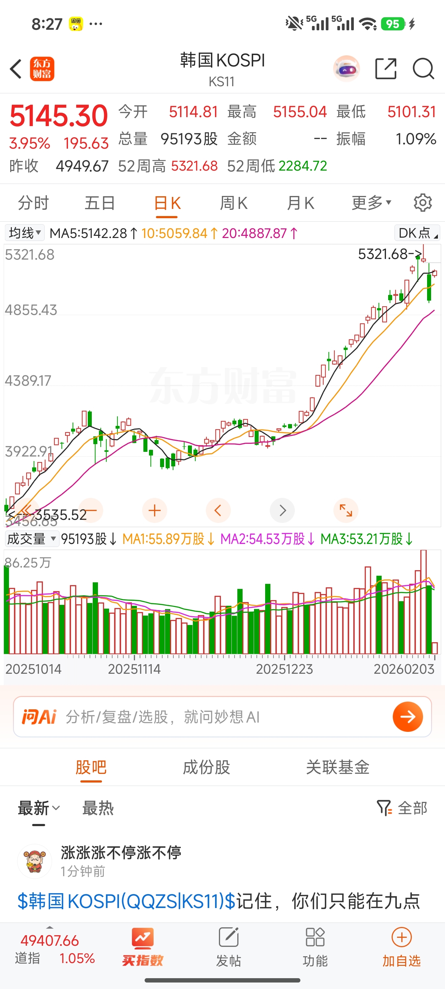$臻镭科技(SH688270)$ 今天半导体有戏了,韩国股市反包