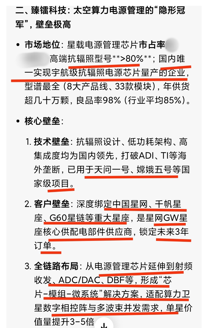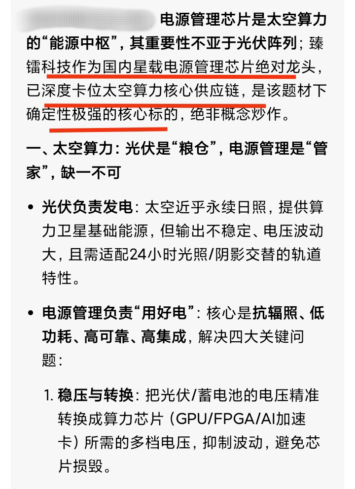 看好太空算力发展,看好臻镭科技的卫星电源管理芯片在太空算力领域的巨大作用和需求。
