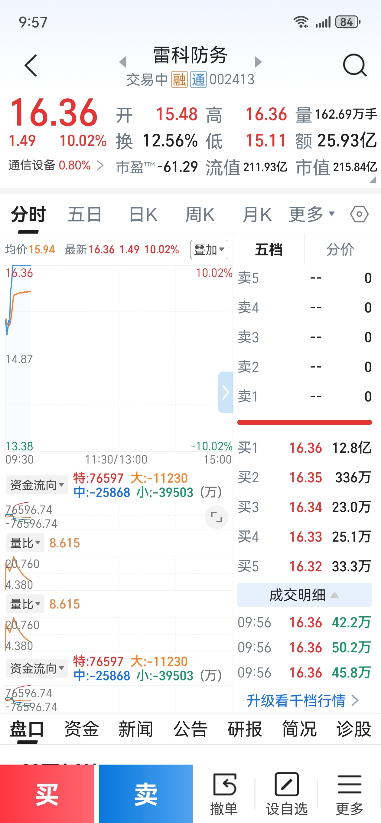 $臻镭科技(SH688270)$ 雷科防务涨停