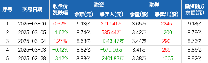 联影医疗:融资净买入3919.41万元,融资余额9.13亿元(03-06)