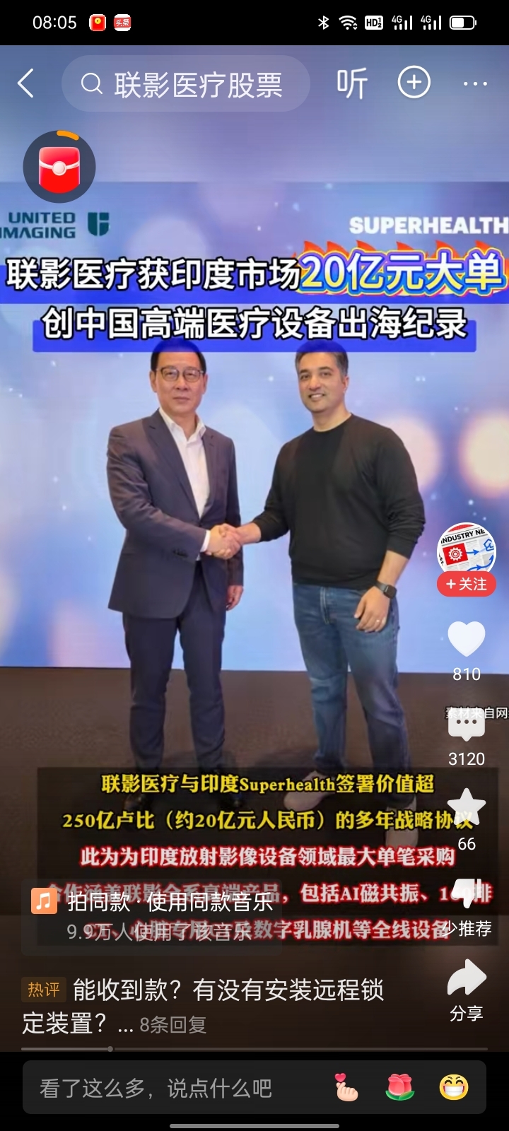 $联影医疗(SH688271)$ 听说联影与三哥签了20亿的单,我过来看看各位还好吗,我劝各位家人先预提这20亿亏损,然后后面有各种医疗事故各种罚款各种官司,祝各位家人安好