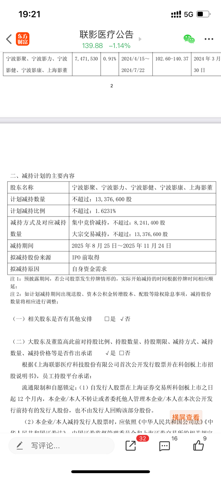 $联影医疗(SH688271)$ 跌跌不休、终于找到原因了