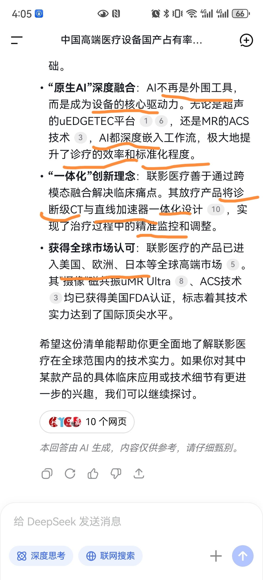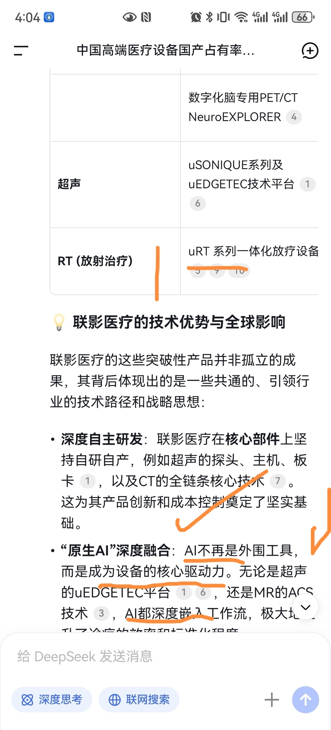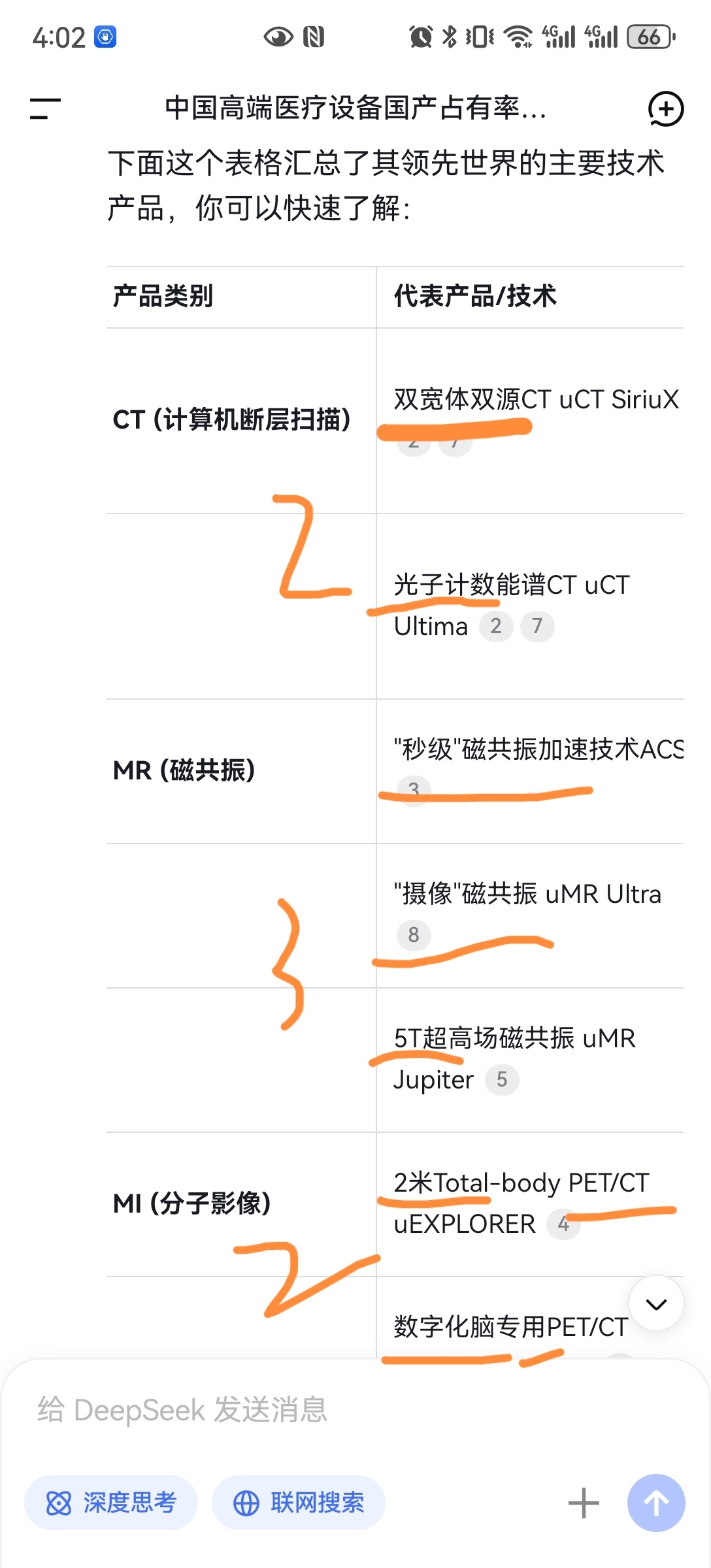 $联影医疗(SH688271)$ 联影医疗在技术产品和国内市场上已实现并跑有些甚至领跑。 联影医疗全球领先的技术有:1、ct有2种:双宽体双源ct、光源计数能普ct;2、mr有三种:秒级磁共振加速技术、“摄像”磁共振、5t磁共振;3、petct两种:2米全身petct、脑专用petct 4、超声一个系列中的高端;5、RT放射治疗(ct+直线加速器
