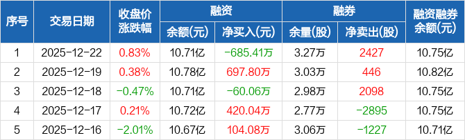 联影医疗:融资净偿还685.41万元,融资余额10.71亿元(12-22)