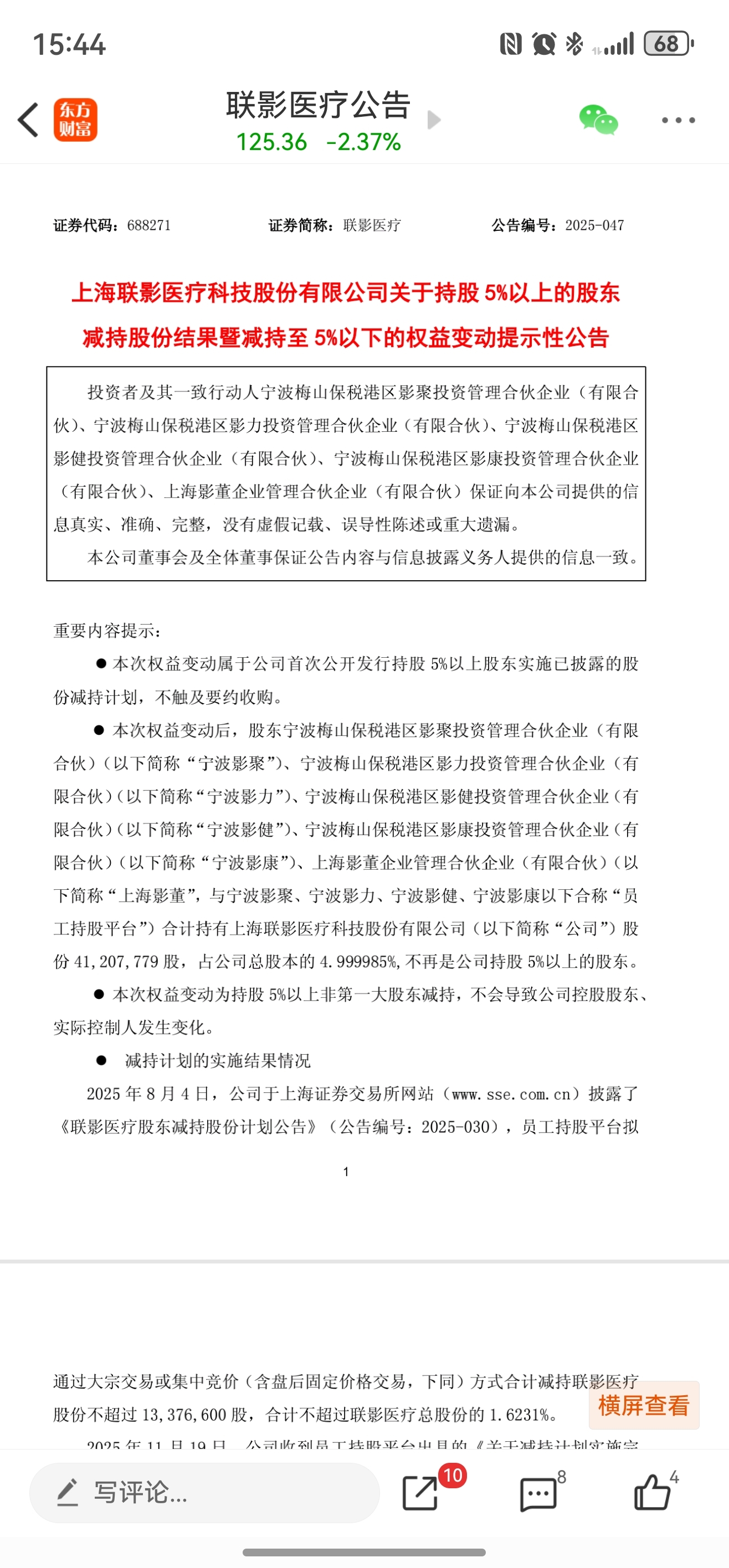 $联影医疗(SH688271)$ 减持压力太大,都散了吧