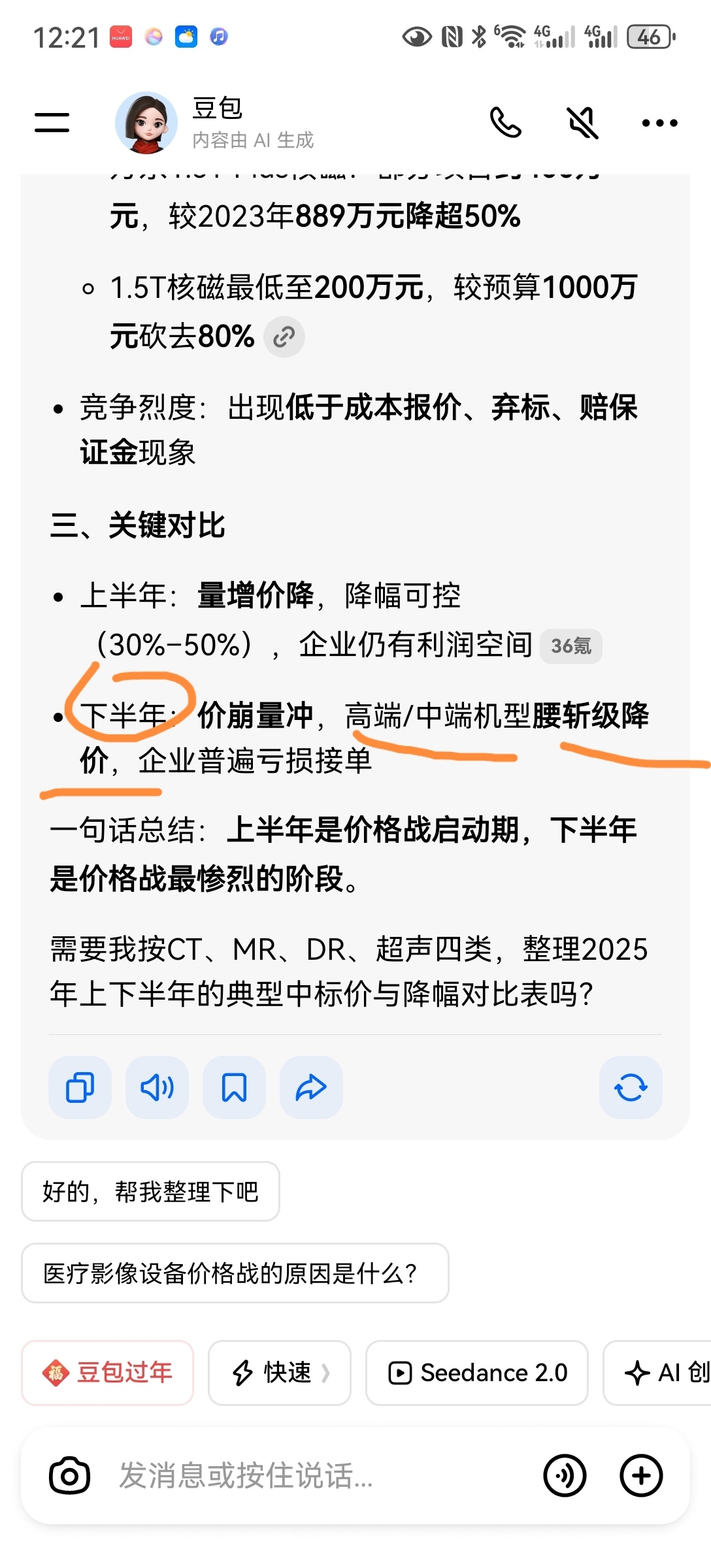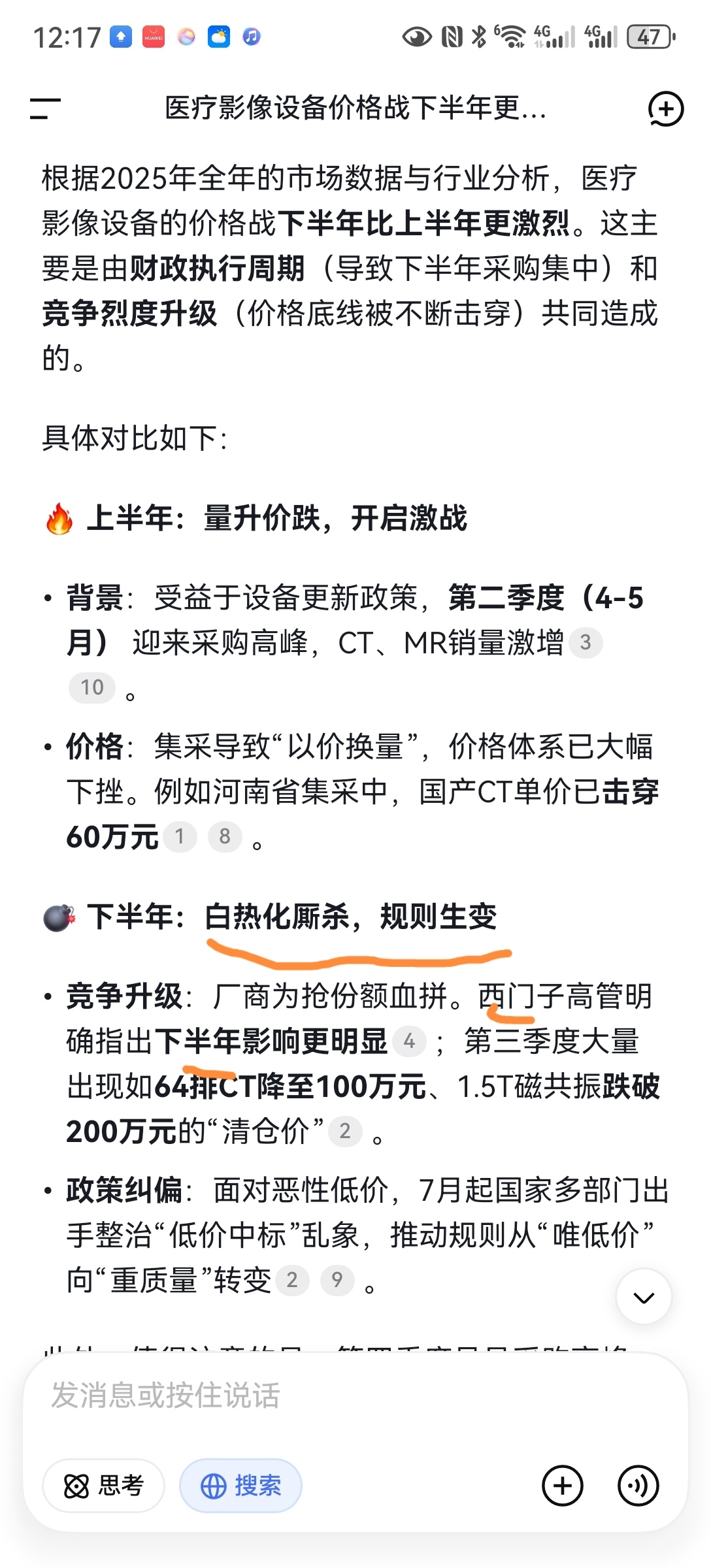$联影医疗(SH688271)$ 价格战越演欲裂,下半年更凶,高端价格都玩腰斩,中标的价格要9~12个月才能形成利润,联影医疗一两年没戏,特别高端都搞价格找了,等啥气候好了毛利率止跌回升了,我外进去,祝大家发财!