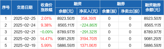 富吉瑞:融资净买入358.39万元,融资余额8923.5万元(02-25)