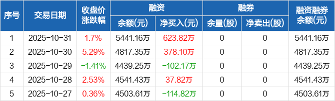 富吉瑞:融资净买入623.82万元,融资余额5441.16万元(10-31)