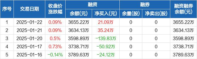 麦澜德:融资净买入21.09万元,融资余额3655.22万元(01-22)