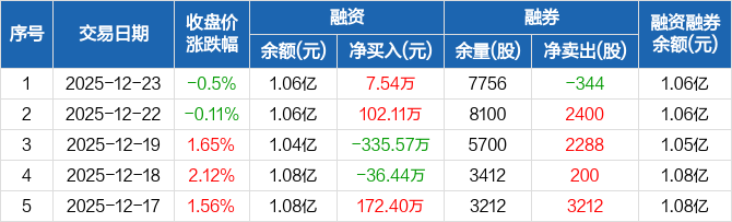 麦澜德:融资净买入7.54万元,融资余额1.06亿元(12-23)