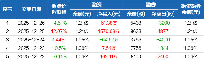 麦澜德:融资净买入61.38万元,融资余额1.21亿元(12-26)