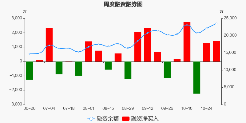 万润新能本周(2025/10/27-2025/10/31)累计涨幅达31.55%,截至10月31日最新股价报收77.84元。从增量上来看,10月27日至10月31日融资买入交易规模2.96亿元,融资偿还规模2.82亿元,期内融资净买入1418.16万元。从存量上来看,截止11月2日,万润新能融资融券余额2.36亿元,其中融资余额规模2.36亿元,融券余额规模0元。