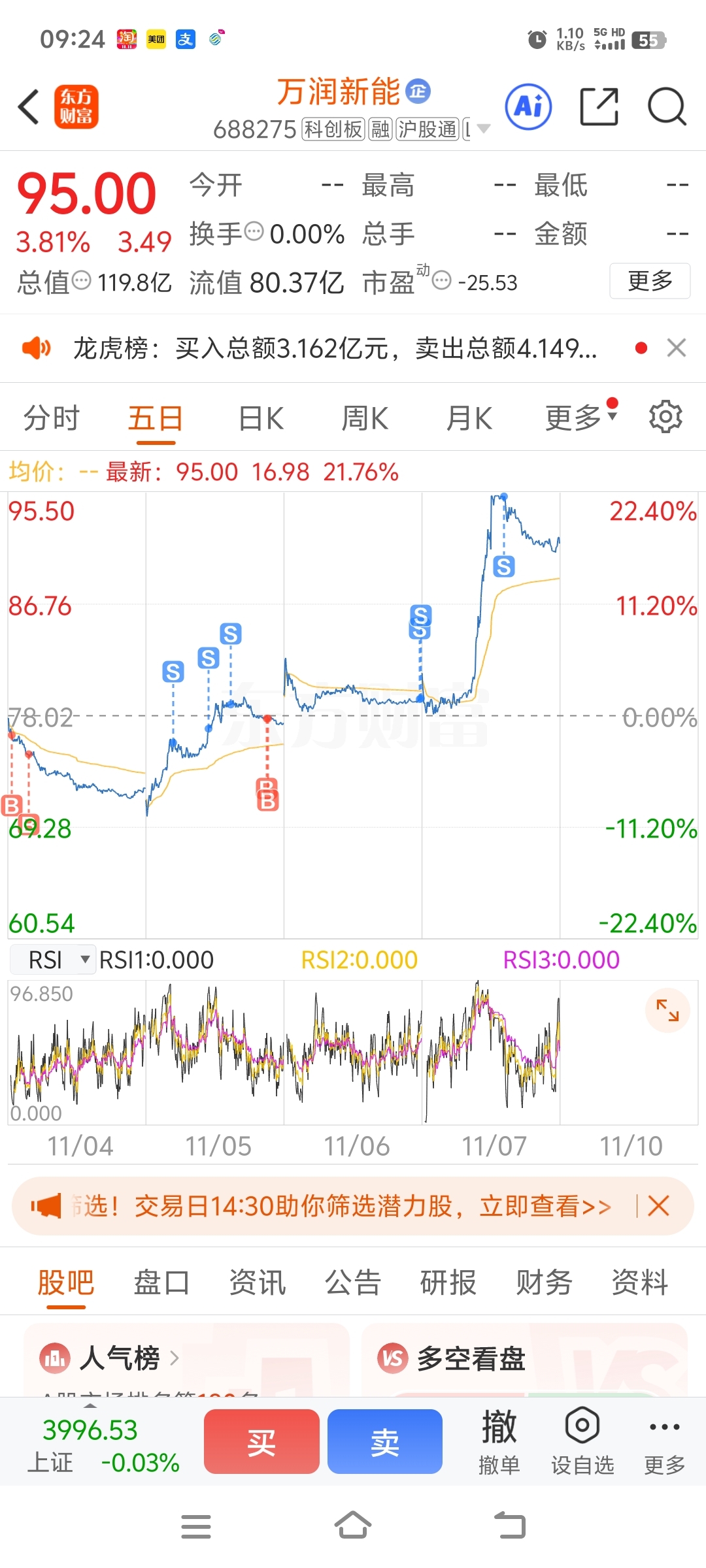 $万润新能(SH688275)$ 重中签到现在,守了3年,总算卖飞了,3年都坚守,却守不住一个星期