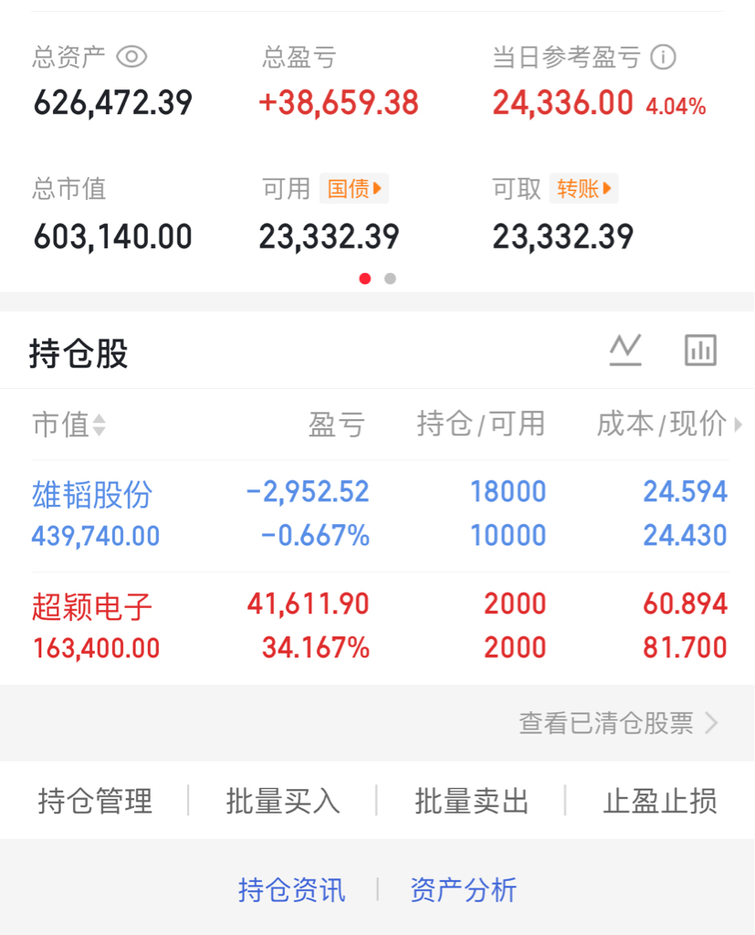 本金50W第26天11.14计划持:超颖电子:格局中,减了一半仓雄韬股份:格局中
