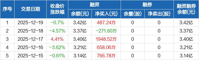 万润新能:融资净买入487.24万元,融资余额3.42亿元(12-19)