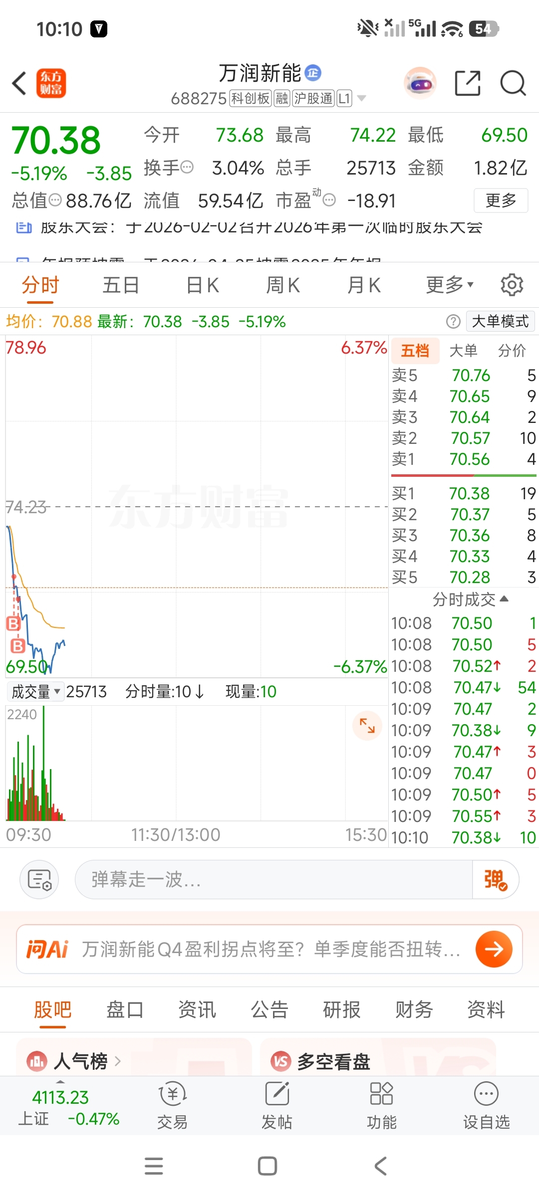 $万润新能(SH688275)$ 买在山顶了
