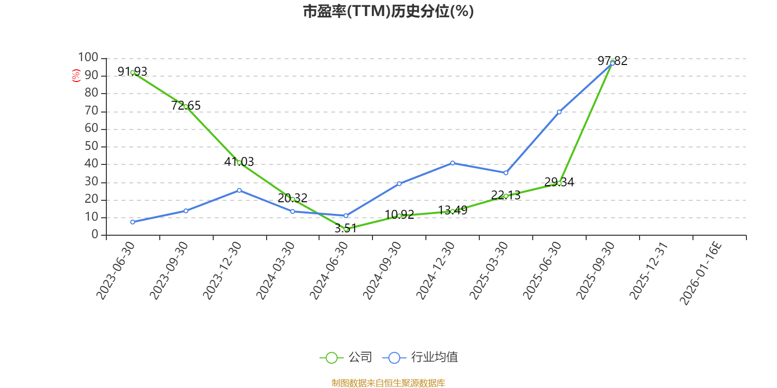市盈率、市净率为负时,不显示当期分位数,会导致折线图中断。