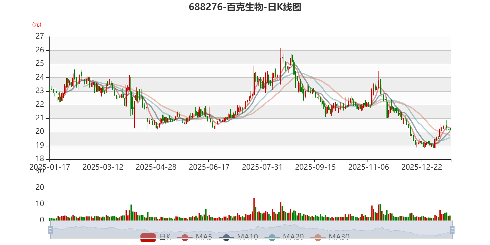 中证智能财讯百克生物(688276)1月16日晚间披露2025年度业绩预告,预计2025年归母净利润亏损2.2亿元至2.8亿元,上年同期盈利2.32亿元;扣非净利润亏损2.4亿元至3亿元,上年同期盈利2.3亿元。以最新收盘价计算,市净率(LF)约2.11倍,市销率(TTM)约12.3倍。