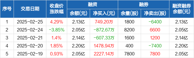 天智航:融资净买入749.2万元,融资余额2.13亿元(02-25)