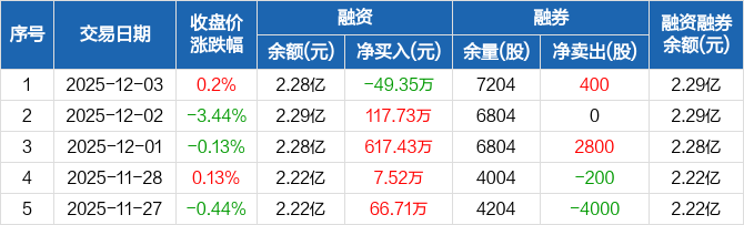 天智航:融资净偿还49.35万元,融资余额2.28亿元(12-03)