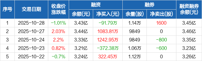 峰岹科技:融资净偿还91.79万元,融资余额3.43亿元(10-28)