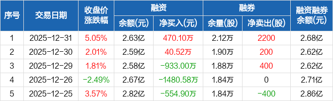 峰岹科技:融资净买入470.1万元,融资余额2.63亿元(12-31)