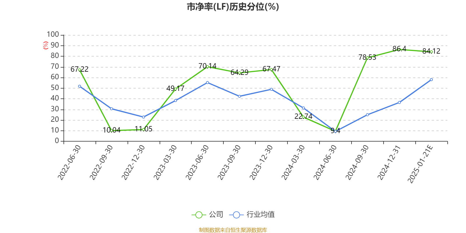 市盈率、市净率为负时,不显示当期分位数,会导致折线图中断。