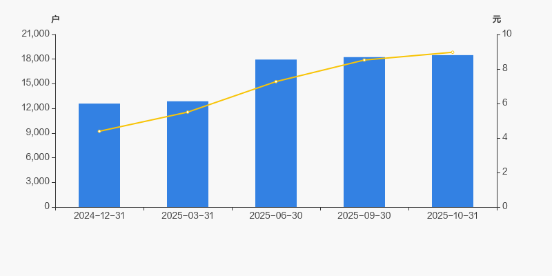 2024年12月31日至今,公司股东户数显著增长,区间涨幅为46.87%。2024年12月31日至2025年10月31日区间股价上涨104.33%。
