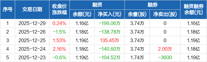 精进电动:融资净偿还199.06万元,融资余额1.16亿元(12-29)