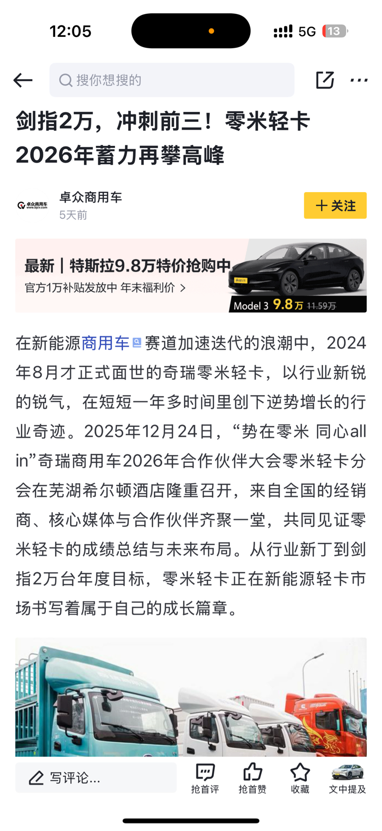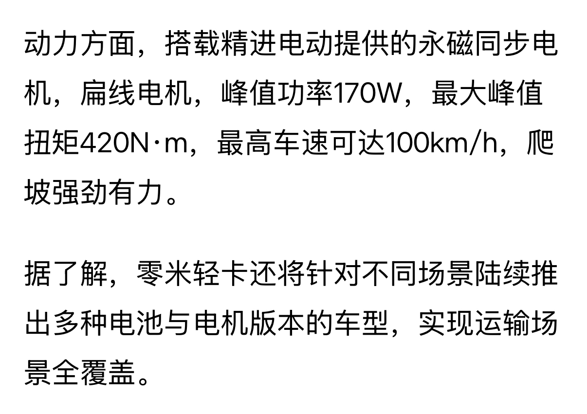 公司嘴太严。大家可以看一下奇瑞的零米轻卡,11月销量增加1000%,用的精进电机