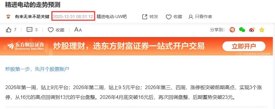 温馨提示: 1.根据《证券法》规定,禁止编造、传播虚假信息或者误导性信息,扰乱证券市场;2.用户在本社区发表的所有资料、言论等仅代表个人观点,与本网站立场无关,不对您构成任何投资建议。用户应基于自己的独立判断,自行决定证券投资并承担相应风险。《东方财富社区管理规定》