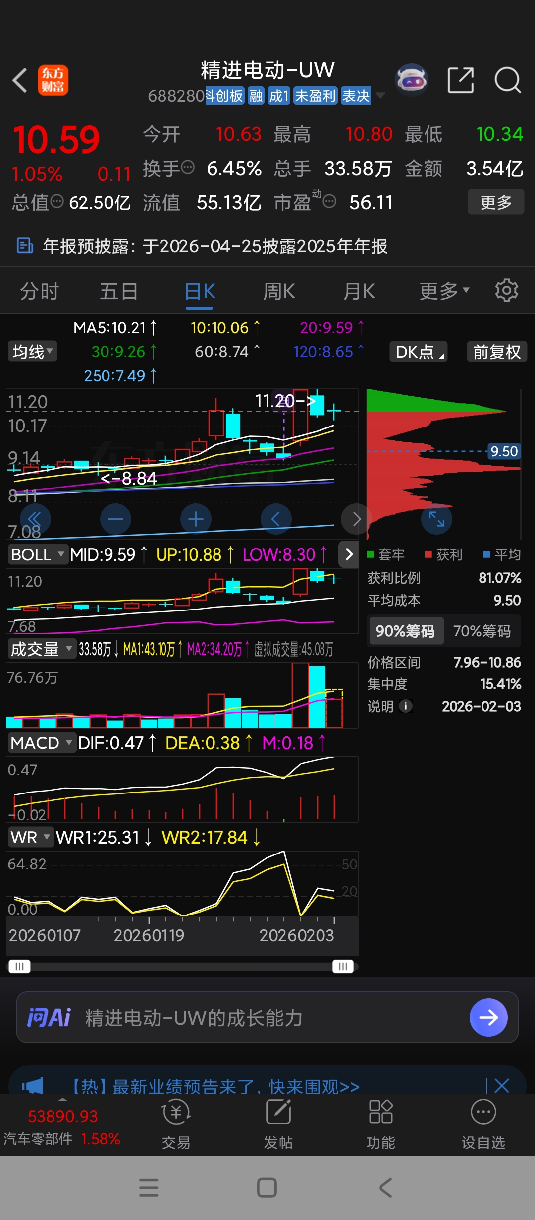 $精进电动-UW(SH688280)$ 下面筹码峰为什么一直不大量上移呢,一个涨停板满足不了他们卖的欲望吗